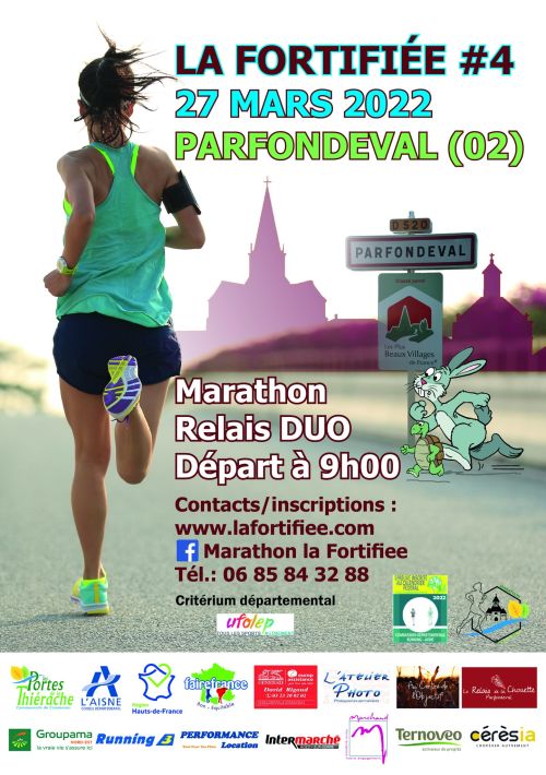 Le marathon, marathon duo La Fortifiée est le seul du département de l'Aisne. Le départ et l'arrivée se font de Parfondeval labélisé "plus beau village de France". Marathon champêtre au coeur des paysages de Thiérache. Traversant 15 villages, La Fortifiée promet grand air, beaux paysages et la découverte de nos églises fortifiées. Marathon individuel ou Marathon Duo (1er=22km 2éme=20km). Relais à Vigneux Hocquet. Parcours verdoyant avec de légers faux plats sur la 1ére partie. La 2ème partie est un peu plus vallonnée avec une côte sur le final.