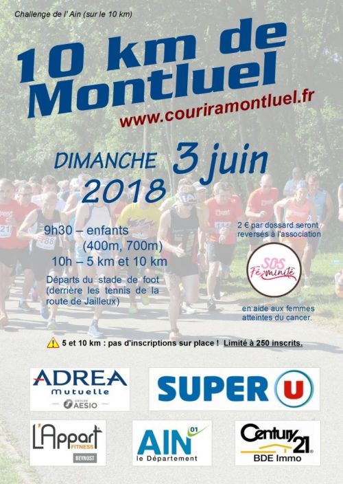 4e édition des 10 km de Montluel. Découvrez les nouveautés / changements 2018 sur les 10 km de Montluel :