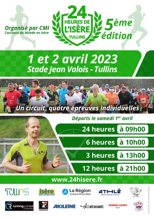 Course d'une durée de 24 heures sur parcours plat labellisé FFA dans le complexe sportif Jean-Valois à Tullins. La course se déroule à Tullins, en Isère, au stade Jean Valois. Au pied des contreforts du massif du Vercors, et au coeur des noyeraies dauphinoises, le circuit propose un cadre agréable et verdoyant dont vous pourrez profiter pendant 24 heures…