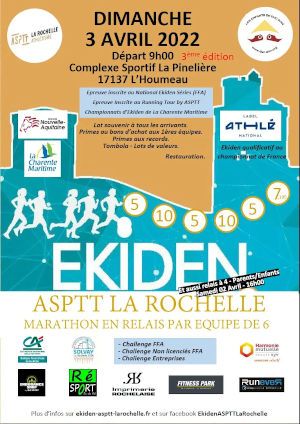 La CDCHS17 confira à l’Ekiden de l’ASPTT La Rochelle les championnats départementaux d’Ekiden ouverts aux équipes licenciées à la FFA.