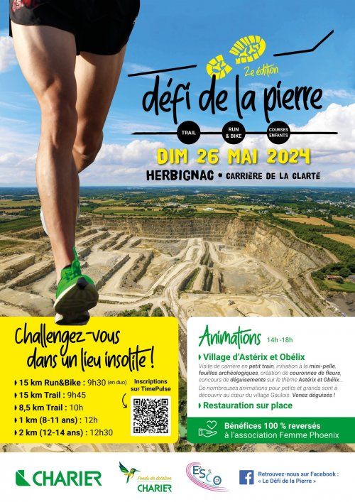 L’ESCO Pontchâteau et l’entreprise CHARIER vous proposent le Défi de la Pierre avec 3 courses se déroulant dans l'enceinte de la Carrière de la Clarté.