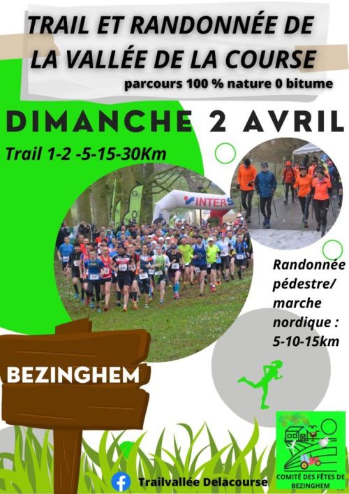 Pour les coureurs souhaitant découvrir la discipline Un petit kilométrage et de légers dénivelés. Le parcours s’effectuera sur les chemins de Parenty & Bezinghem en utilisant le parcours référencé de randonnée. Un parcours très vallonné tracé avec les agriculteurs et propriétaires qui nous ouvrent leur terrain permettant de découvrir uniquement ce jour de jolis paysages. Vous utiliseraient très peu de route pour favoriser les chemins de terre, pâtures, bords de champs, bois...