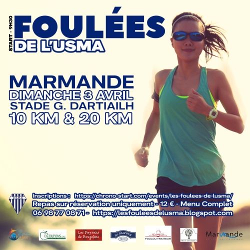 Foulées de l'USMA avec parcours plat avec départ et arrivée sur la piste synthétique du stade Dartialh de Marmande.