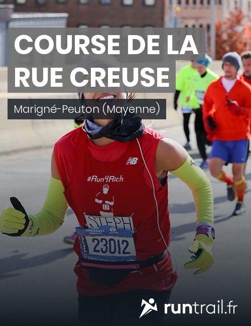 Course de la rue Creuse sur parcours agréable de 7.3km comprenant 3km de route et le reste en chemin autour des étangs de Marigné-Peuton et de Peuton, sous bois et champs herbeux.