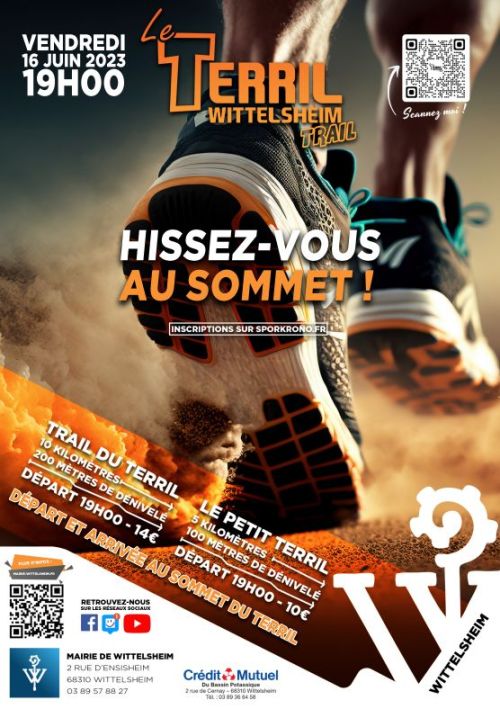 La Ville de Wittelsheim et l’Office municipal des sports et de la culture vous proposent la course 'Le Terril Wittelsheim Trail' avec deux parcours emblématiques : le 'Trail du Terril' de 10 km avec un dénivelé de 200 mètres et 'Le Petit terril' de 5 km pour seulement 100 mètres de dénivelé. Les coureurs auront l'occasion de défier leur endurance en parcourant les sentiers du terril de Wittelsheim, avec un départ et une arrivée au sommet.