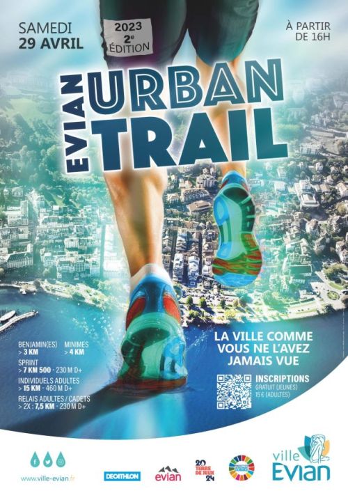Evian Urban Trail, organisé par le service des sports de la ville d’Evian, départ/arrivée se situe Quai Charles Albert Besson. Gratuit pour les moins de 18 ans. Courses Minimes 4 km et course Benjamin(es) 3 km – Départ à partir de 16h00