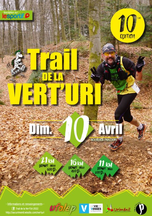 Trail organisé par l’Association Sportive et Culturelle d’Uriménil (ASCU) qui se court sur une distance, selon le parcours retenu, d’environ 11km, 16km ou 21km sur les sentiers et les chemins à travers les prairies et les forêts d’Uriménil et des communes d’Epinal, Renauvoid et Uzemain.