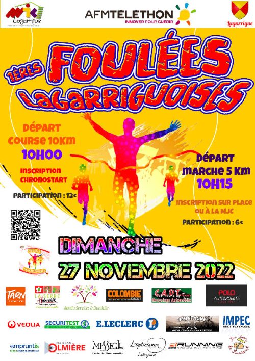 La MJC et la commune de lagarrlgue en action pour le Téléthon dans le cadre des Foulées Lagarriguoises reverseront l’intégralité des bénéfices de cette manifestation au profit de l’AFM Téléthon.