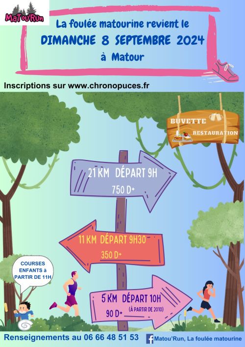Comme tous les ans à Matour la tradition c'est la convivialité la bonne humeur, la simplicité mais aussi l'esprit de compétition. Départ/arrivée dans notre superbe parc du manoir qui a fait peau neuve. Alors venez découvrir Matour et ses environs, souvent appelée la petite suisse, MATOUR est entre le Haut-Clunysois, le Mâconnais, le Beaujolais et le Charolais.