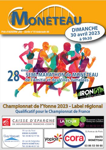 Semi-marathon de l'amitié et des villes jumelées à Monéteau (89) à côté d'Auxerre. Parcours TOTALEMENT PLAT et 1 seule boucle. Il a le label régional depuis plus de 15 ans, qualificatif pour le championnat de France depuis plus de 15 ans. Cette année il est aussi support du championnat de l'Yonne, support national du 10ème ASPTT Running tour, support du 7ème challenge départemental ICAUN’TOUR.