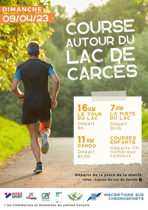Courses 16km et 10km moitié route/moitié piste autour du Lac. Course enfants dans le village.