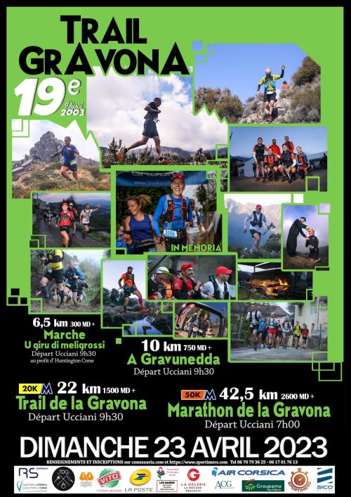 Le Trail Gravona est une course pédestre en montagne organisée en Corse du Sud par le Corsica Sport Mezzavia, association sportive de sport nature. L’ensemble des parcours se déroulent à travers les sentiers de basse et moyenne montagne de la vallée de la Gravona (au Nord Est d’Ajaccio). Les tracés ne présentent pas de difficultés techniques particulières, et s’étendent entre les communes d’Ucciani, Tavera et Bocognano en traversant une partie des villages. Le départ de chacune des épreuves est donné du village d’Ucciani. Une attention particulière est portée sur la mise en valeur patrimoniale ainsi que sur l’Eco-responsabilité.