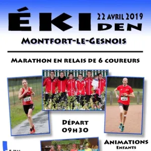 Les JAMG vous propose de prendre part à un EKIDEN, marathon en relais à 6, à Montfort le Gesnois. Sur cette épreuve chacun pourra trouver la distance qui lui convient : 5, 10 ou 7,195km.