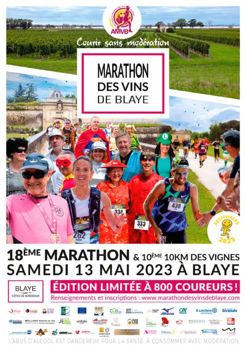 Créé en 2004, le marathon des vins de Blaye arrive à sa 17ème édition. Son objectif est de faire découvrir aux coureurs et accompagnateurs de la France entière (et d’ailleurs!) la belle région de Blaye et son vignoble au travers de cette épreuve résolument festive. Soutenu dès l’origine par tous les acteurs institutionnels et privés de notre région, le Marathon en est devenu un évènement incontournable. L’épreuve a progressé tous les ans, tant en nombre de coureurs, qu’en budget, qu’en animations, qu’en nombre de partenaires à ses côtés. Le bouche à oreille est excellent : les coureurs reviennent sur l’épreuve et la conseillent vivement à leurs proches.