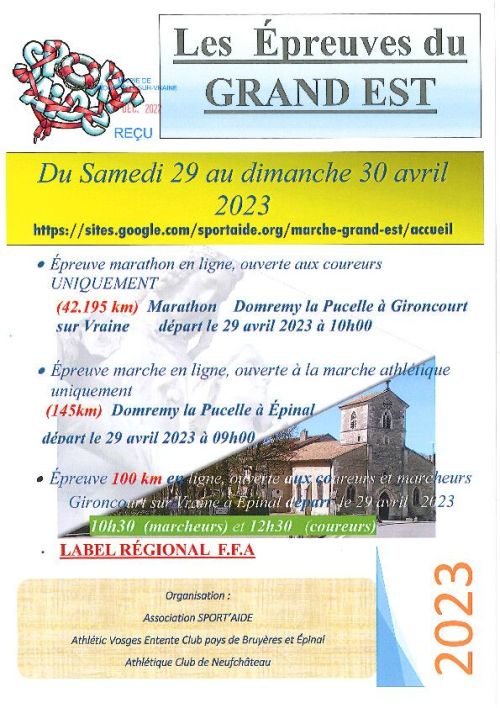 Épreuve ouverte aux coureurs et marcheurs de 100 km DÉPART 23H00 pour les coureurs et 21h00 pour les marcheurs Arrivée 13h45 maxi le 01 mai soit un temps limité total 16H40