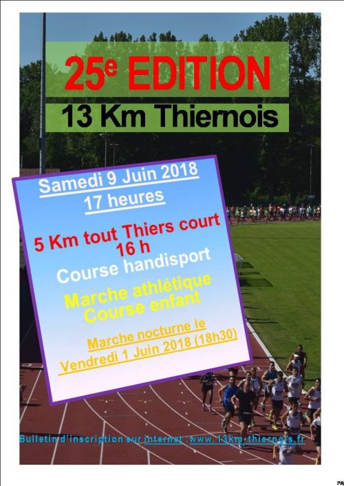 La course mythique des 13 km Thiernois . 13 km ou s’enchaîne cote , marche d'escalier , descente . Pour toute info et inscription, visitez le site 13km-thiernois.fr Catégories autorisées JU->V5.