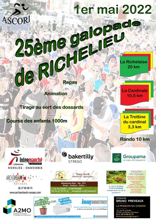 La Galopade s'oriente vers la course nature avec notamment un tout nouveau parcours de 20 kms en une seule boucle qui remplace le semi. Celui ci est composé à 90 % de chemins en forêt avec le passage dans la cour du château du Fougeray et la traversée du parc de Richelieu pour terminer.