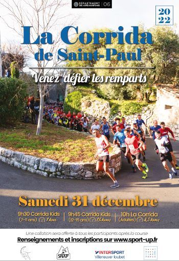 La Corrida de Saint Paul, épreuve pédestre de 8km, est organisée le 31 décembre par Sport Nature Activité Promotion (SNAP) avec le concours du Conseil Général des Alpes Maritimes et la commune de Saint Paul de Vence.
