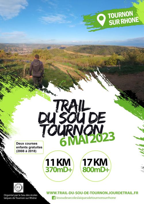 Trail du Sou de Tournon le 6 mai 2023 à Tournon sur Rhône. Deux course: La chevreuil : un trail de 11 km sur 92% de chemins et singles et 8% de route. Boucle avec 370 m de D+/- : départ à 15h