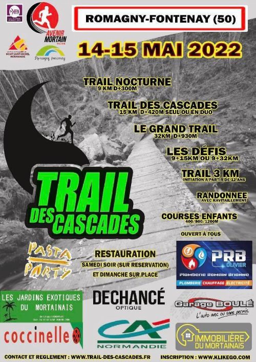 Trail en Solo ou Duo Ouvert de Cadets à Vétérans (masters). Une seule boucle avec 90 % de chemin. Particularité : passage par La Petite Chapelle de Mortain, la cote 314, les 2 cascades de Mortain et l’Abbaye Blanche Solo : boucle effectuée par un seul coureur Duo : boucle effectuée par 2 coureurs / changement à mi-course au lieu dit « champ de la fête à Neuneu », Le Neufbourg . Navette pour ramener le premier coureur au lieu de départ. Classement au cumul du temps des 2 coureurs