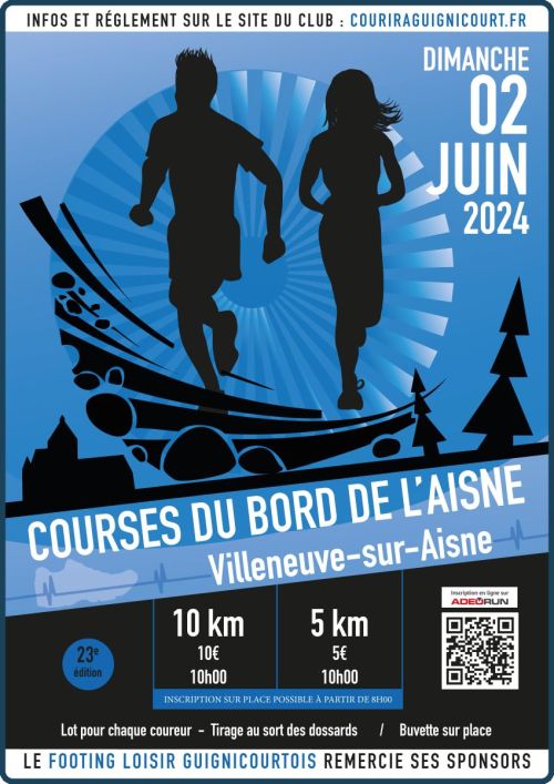 Le FOOTING LOISIR GUIGNICOURTOIS ET LAONNOIS organise la course du bord de l’AISNE, une course pédestre de 10KM dont le départ sera donné à 10H00, depuis l’esplanade Jean THOURAUD à GUIGNICOURT.