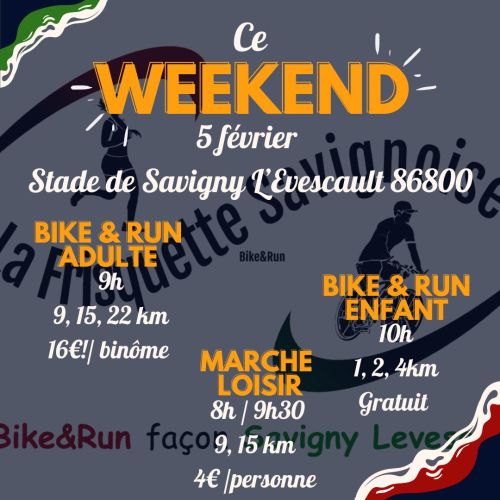 Bike and run de 9 ou 15 ou 22Km et marche de 9 et 15 km.