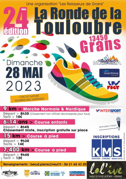 Les Relayeurs de Grans vous invite à la Ronde de la Touloubre. Vous avez le choix entre 2 parcours , en format course ou en Marche Nordique.
