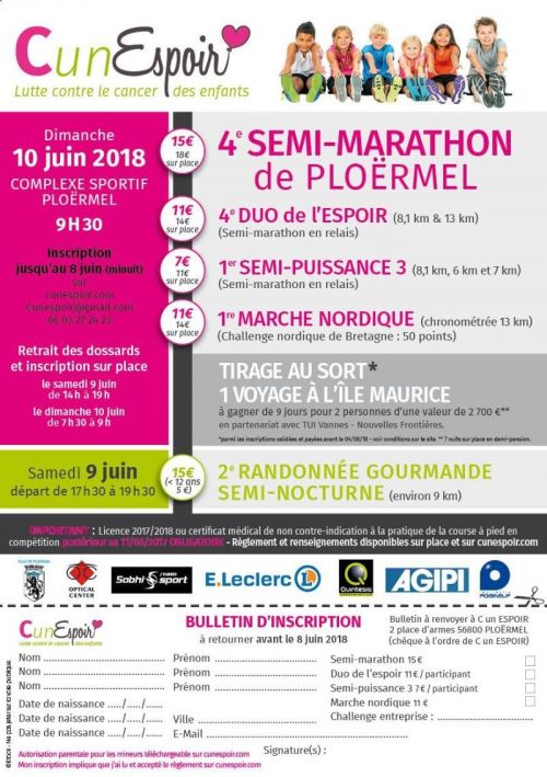 C un ESPOIR est une association qui vient en aide (directement ou indirectement via des associations) aux familles de notre région ayant un enfant atteint de cancer. Nous récoltons des fonds en organisant des manifestations sportives, culturelles ou ludiques. Ces rendez-vous ont lieu tout au long de l’année sur tout le Morbihan, mais principalement lors d’un grand week-end qui se déroule à PLOERMEL au mois de Juin