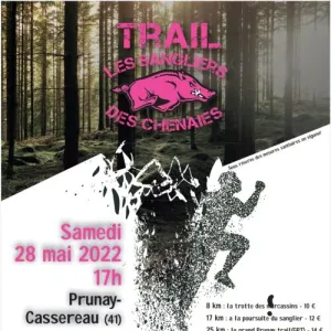 L’association « RUN in pRUNay » organise son Trail « Les Sangliers des Chênaies». Le départ et l’arrivée des courses se feront au lieu-dit « le Bois de la Cure », centre-bourg de Prunay-Cassereau (41). Cette manifestation sportive pédestre, objet du présent règlement, est interdite à tout engin à roue(s), hors ceux de l’organisation; les animaux domestiques sont également interdits sur les épreuves.