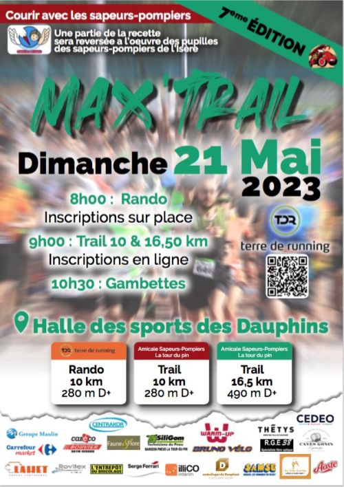 L'Amicale Sapeurs-Pompiers la Tour du Pin organise le Max'Trail, une Course nature avec 2 parcours.
