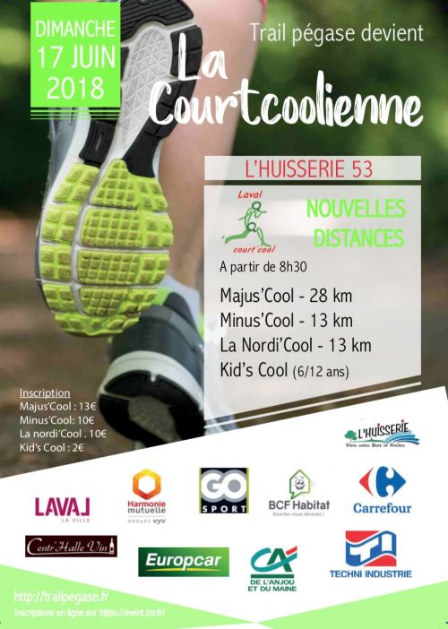 Courses natures (13 et 28 kms) et marche nordique (13 Kms). Aprés avoir longé la Mayenne pendant quelques hectomètres sur le chemin de halage vous découvrirez des parcours dans le bois de l’Huisserie qui surprendront les habitués du lieu entre rivière ,centre équestre et hippodrome.