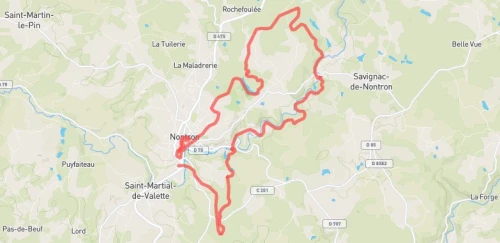 Vous cheminerez autour de l'étang des Nouailles pour rejoindre la forêt d'Endore, endroit parsemé de monotraces et de relances exquises. Puis c'est dans la somptueuse vallée du Bandiat que vous vous aventurerez par les sentiers et singles avant de reprendre de la hauteur le long des anciennes Carrières de craie de Nontron. Un passage par la terrible côté d'Azat avant le 3e ravitaillement.