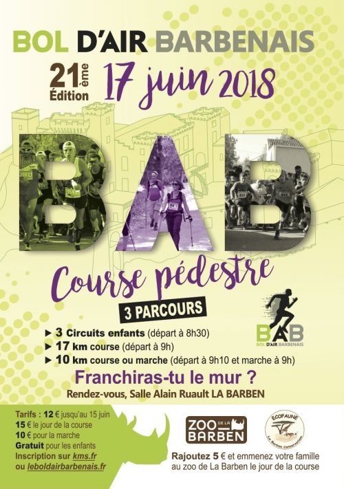 Venez vivre une belle aventure en famille ou entre amis ! Courez dans le Château de La Barben le matin et emmenez votre famille au zoo l’après-midi pour 5 € de plus ! Pour la 21ème édition du Bol d’Air Barbenais, vous passerez dans le château ! D’autres surprises vous attendent (sans obstacle) !