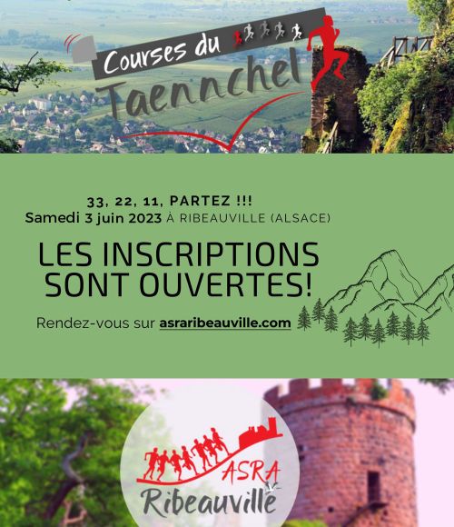 Les Courses du Taennchel sont organisées par l’Association Sportive Ribeauvillé Athléroute (ASRA), ceci conformément à l’autorisation de la Préfecture du Haut-Rhin et à l’arrêté de la Ville de Ribeauvillé.