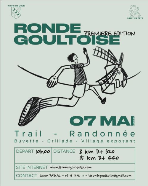 Au départ de la place du village de Goult, nous vous ferrons découvrir nos chemins parfois méconnus à travers deux distances, un 8 et un 15km accessibles à tous. Dans le cadre de ces épreuves, un marché des producteurs sera mis en place, avec possibilité de se restaurer et se désaltérer.