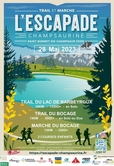 Escapade Champsaurine, Trail et Marche de Saint Bonnet en Champsaur La mairie de Saint-Bonnet en Champsaur en collaboration avec le club de course à pieds « Team Champsaur Nature » basé à Saint-Bonnet-en-Champsaur organisent le dimanche 5 juin 2022 la première édition du Trail de Saint-Bonnet-en-Champsaur, nommée « L’escapade Champsaurine ».