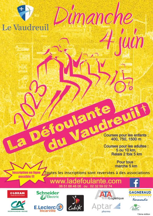 Fondée en 2009, la Défoulante est née de la passion du sport et du désir d’aider les autres. Ludique et festive, située au cœur du Vaudreuil, la Défoulante est devenue en 5 ans « La Course Incontournable » de la région. Une manifestation adaptée à tous : petits et grands, sportifs ou non, valides ou handicapés chacun peut participer à son rythme et selon son envie (Course petiots de 400 m et 750m, Course enfants de 2km, Marche et course de 6 km pour les plus grands et les adultes).