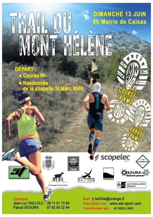 Trail du Mont Hélène est organisé par Team Trail Thuir (le 3T). Très beau circuit dans les Aspres Catalanes avec escalade du mont Hélène, vue imprenable sur la plane du Roussillon. Caixas petit village Catalan très pittoresque.
