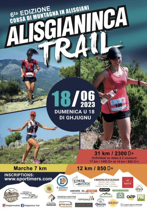 L'Alisgianinca trail, au départ du Couvent d'Alesani en Haute-Corse, emprunte des sentiers techniques à travers les sommets et les hauts plateaux de la région. Des paysages sublimes qui sauront vous faire oublier les difficultés. La version longue (31 Km 2300 D+) concerne uniquement les coureurs expérimentés en raison des difficultés techniques (parcours de crêtes, pierriers, dalles, etc...). Depuis le couvent, le parcours rejoint par ascension la ligne sommitale du bassin versant, donc en altitude (passage à 1726m) et la suit régulièrement en passant par chapelle de Sant'Alesiu (Saint Patron de la vallée) pour revenir sur le village d’Ortale (au niveau de la rivière) puis retour sur le couvent.