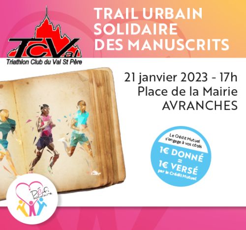 Le TC Val organise le Trail Urbain des Manuscrits à Avranches, place de la Mairie. L'épreuve se compose d'un parcours de 10km avec 300m de dénivelé accessible à tous. Le tracé inédit permet de découvrir le patrimoine de la ville d'Avranches. L'intégralité des bénéfices seront reversés au défi solidaire (les enfants en situation de handicap), soutenu par le Crédit Mutuel.