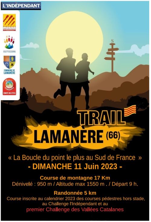 Le Trail Lamanère c'est "La boucle du point le plus au Sud de France". Course de montagne la plus au Sud de France Départ du village vers les crêtes des Pyrénées Orientales. Cette année challenge transfrontalier avec des courses de catalogne sud. Une rando sera organisée en parallèle.