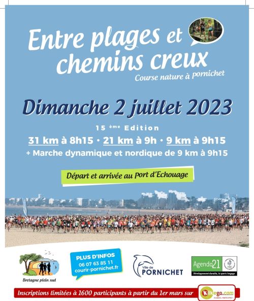 15ème édition de la course Entre plages et chemins creux organisée par le club Courir Ensemble Pornichet Côte d’Amour sur circuit alternant plages et chemins.