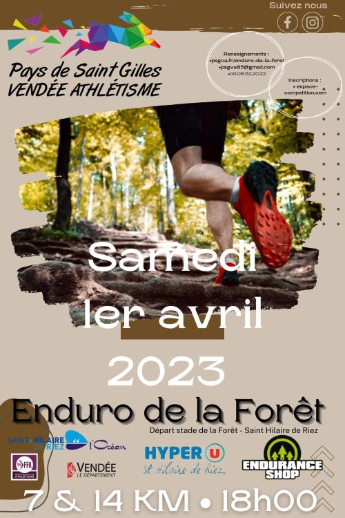 Course nature / Trail semi nocturne 7km (1 boucle) ou 14 km (2 boucles) Le 14 km est une épreuve du Challenge Endurance Shop 2023 Départ diurne, arrivée nocturne : lampe frontale obligatoire Difficultés : sable, côtes, escaliers Vestiaires et douches sur place. Consigne au bar. Ravitaillement sur le parcours de 14km et ravitaillement d'arrivée pour toutes les courses. Récompenses 3 premiers au scratch, féminin et masculin Tarifs Licenciés/Non licenciés : 7km 9€/12€ 14km 13€/16€
