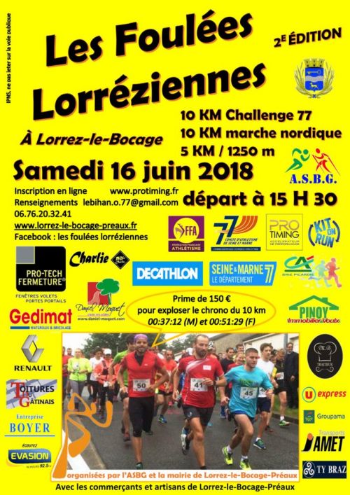 Pour cette édition 2018, la grande nouveauté est l'entrée des Foulées Lorréziennes au challenge 77 groupe C des courses hors stade avec son circuit mesuré officiellement. Autre nouveauté avec plusieurs courses au programme, et nous vous attendons nombreux à venir courir.
