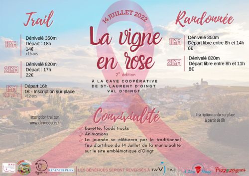 Situé sur la commune de St Laurent d'Oingt, 30 min de Lyon, 20 min de Villefranche, ce trail vous fera découvrir sur deux parcours, entre vignes, sentiers et bois, des points de vue à en couper le souffle !