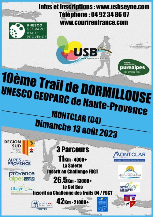 Les parcours du 26 kms et 42 kms font parties du Challenge des Trails de Provence Course nature en terrain varié (piste forestière, chemin monotrace et alpages) composée de trois parcours: 10, 24 et 42 km au départ de la station de Montclar (stade municipal derrière le batiment communal). Le parcours 24km permet de faire le tour de Dormillouse, qui domine le lac de Serre-Ponçon, les vallées de l'Ubaye et de la Blanche, le parcours 42km emprunte le 24km et passe par le fort de Dormillouse et les magiques crêtes de la chaine de la Blanche.