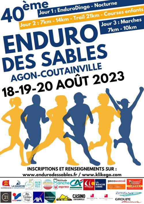 Enduro des Sables avec cette année la gratuité des courses jeunes, un semi marathon et une épreuve marche rapide officielle. Et toujours les épreuves classiques 7 et 14km.