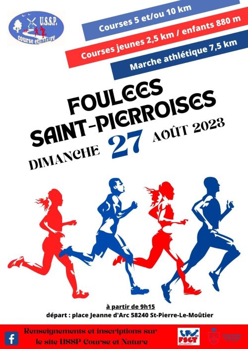 Foulées Saint Pierroises sur une boucle de 2,5 km, légèrement modifié en centre-ville, afin de limiter au maximum les nuisances pour les riverains et les difficultés de circulation dans Saint-Pierre-le-Moûtier