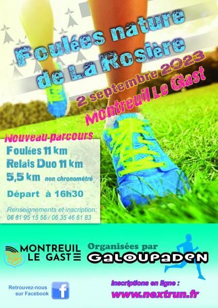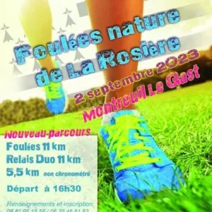 Noueau parcours cette année pour les Foulées Nature de la Rosière, départ du terrain des Sports, passage dans les sentiers pédestres et autour de l'étang de Montreuil Le Gast, deux boucles de 5 Km