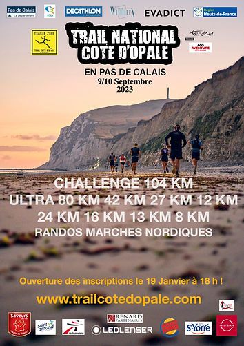 Nous sommes heureux de vous présenter cette épreuve nature, unique dans la région. Loin des montagnes des Alpes ou des bitumes des marathons, la Côte dʼOpale avec ses plaines et vallons, ses falaises et ses dunes, ses chemins sinueux et ses forêts, ses vents et ses marées possède un cadre naturel unique, incroyablement varié et magnifiquement protégé. Le Trail Côte d’Opale en Pas de Calais est devenu un l’événement phare du Sport Nature au Nord de Paris. Cette année encore, prés de 7000 Trailers viennent de toute la France et d'une trentaine de pays seront sur la ligne de départ pour essayer de terminer les différentes épreuves organisées . Une épreuve 86km Challenge est organisé cette année : 24km le samedi et 62km le dimanche.
